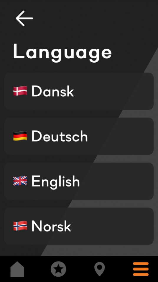 Du har nå også flere valgmuligheter på språk i appen. Nå kan du velge dansk eller tysk i tillegg til engelsk og norsk som har vært med siden starten. Merk! Vår support er fortsatt kun engelsk og norsk.